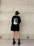 オーバーサイズのロンTをワンピース風にスタイリングしてみました☺︎❤︎ バックに大きくデザインされたプリントがポイントで、モノクロフォトなのでカジュアルすぎない印象で着用頂けます♫ ドロップショルダーなので落ち感があり、袖も長めでゆったり着用出来るので身長、体型選ばず万能に着れるのも嬉しいポイント! ニットやベストなどとのレイヤードスタイルも、雰囲気が変わってくれるのでオススメです❤︎ 一緒に合わせたブーツは、凹凸感のあるソールがポイントのレースアップブーツ! サイドジップ仕様なのでラクに着脱ができ、見た目のボリュームに比べてかなり軽量なのでストレスフリーで着用頂けます♪ 足元にボリュームが出る事で、脚をスッキリ魅せてくれるのも盛れポイントです◎笑 是非コーディネートでチェックしてみて下さい☺︎