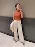 トップスはメローのデザインが可愛いくてお気に入り❤︎ パンツはくしゅっとした素材感で少しカジュアルな雰囲気で履いて頂けます!