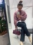 上質なイタリア製ニット♡ イタリア糸でないと出せない色合いと軽くて保温性が高いのがが特徴。 ピンクも甘くなりすぎないようにロンTをレイヤードしてカジュアルに合わせたよ!