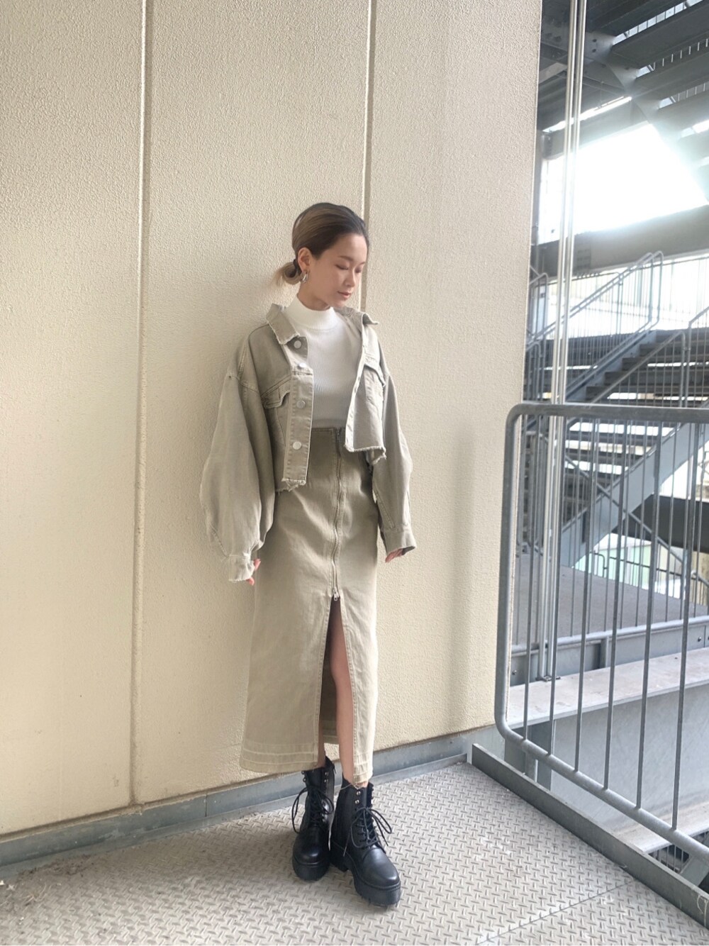 伊藤 奈那(MURUA)のデニムジャケット「コクーンスリーブジャケット」を使ったコーディネート