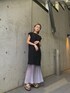 お問い合わせ多数のバイカラーシアープリーツスカート!程よく透けるシアー感とグラデーションカラーが夏らしい涼しげな印象です♪普段プリーツスカートはあまり着ないけど、これは人と差もつくデザイン性がありとっても好み♡自分らしくちょっとモードにミニワンピースをレイヤードして合わせました。合わせているミニワンピースは細身なシルエットなので、写真のようにチュニックとして着た時にも縦長ラインが強調されスッキリ着られます。"ビックTだと着せられている感じが出てしまう"という方には、スタイル良く着こなして頂けるのでオススメです!ウエストもゴムでこれからのシーズンにピッタリの一枚です!