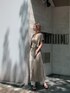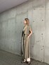 夏一枚あると大活躍なリネンタッチロングベストはワンピースとベスト2wayで着られるアイテム!ベストの袖は半袖なので、インナーはスッキリとバッククロスキャミで合わせました♪ワントーンで抜け感のある大人コーデです♡ ウエストベルトは腰位置より高めに付いているので、足長効果もバッチリ!小柄な方はウエストを少しきつめに絞ると細身なシルエットになるのでバランス良く着こなして頂けます。サイドスリット入りなので足元ももたつく心配はありません♪
