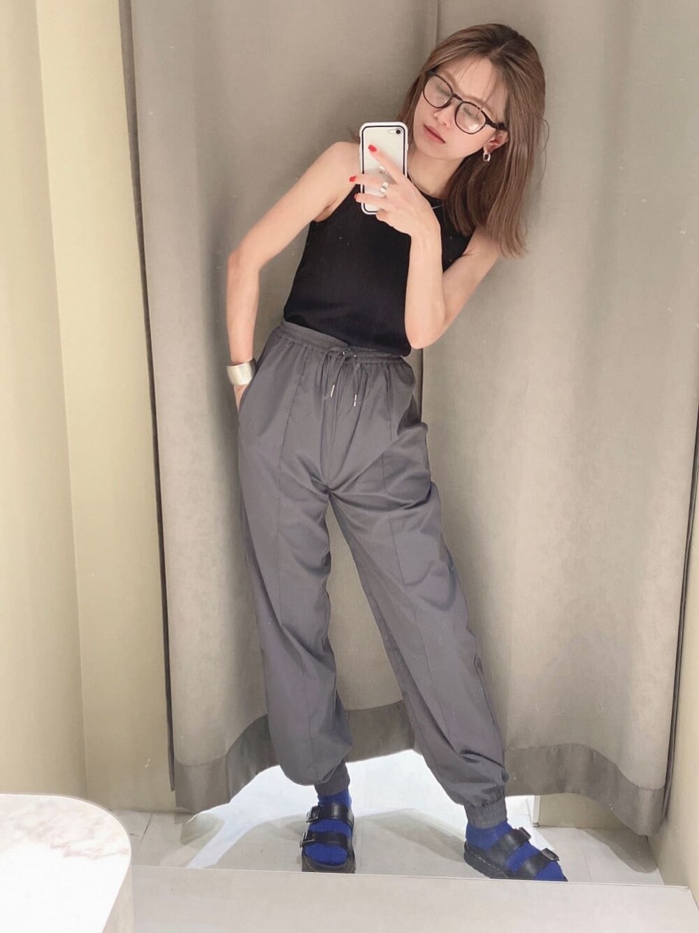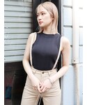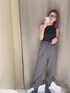 【トップス】アメスリタンクはパット付なので一枚で着用できる、楽ちんアイテム⭐︎ 夏らしいヘルシーな印象に仕上げてくれます! 【パンツ】ナイロン素材なのでスウェットよりもファッション性がありオシャレ見えします!ウエストもゴムなのでついついヘビロテしてしまいそうな予感、、 センタープレスが入っている為、程よくちゃんとした雰囲気で外しすぎないデザインがポイントです◎