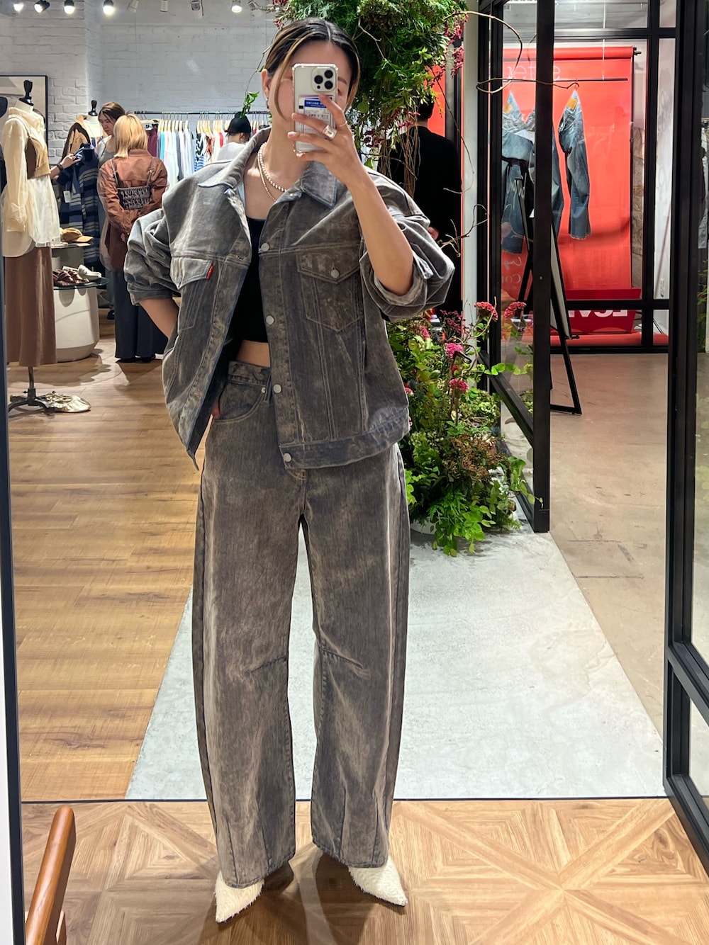 西部結花(Ungrid)のデニムジャケット「フロッキー起毛デニムジャケット」を使ったコーディネート