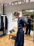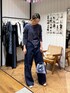 デザイントップスはベロア素材で秋冬らしいムードに。 コンパクトサイジングなのでボトムはボリュームシルエットでバランスを取ったスタイリング。 デニムもサイドにカッティングがあることで一見シンプルな合わせのアイテムもエッジが効いた印象に。