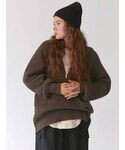 ゆったりとしたサイズ感のニットはジップを開けてカットソーとレイヤードするも良し、タートルにしても可愛い万能アイテムです♡ 袖まわりもたっぷりとしたサイズ感でゆったりサイズでもシルエットがキレイなニットですよ♡