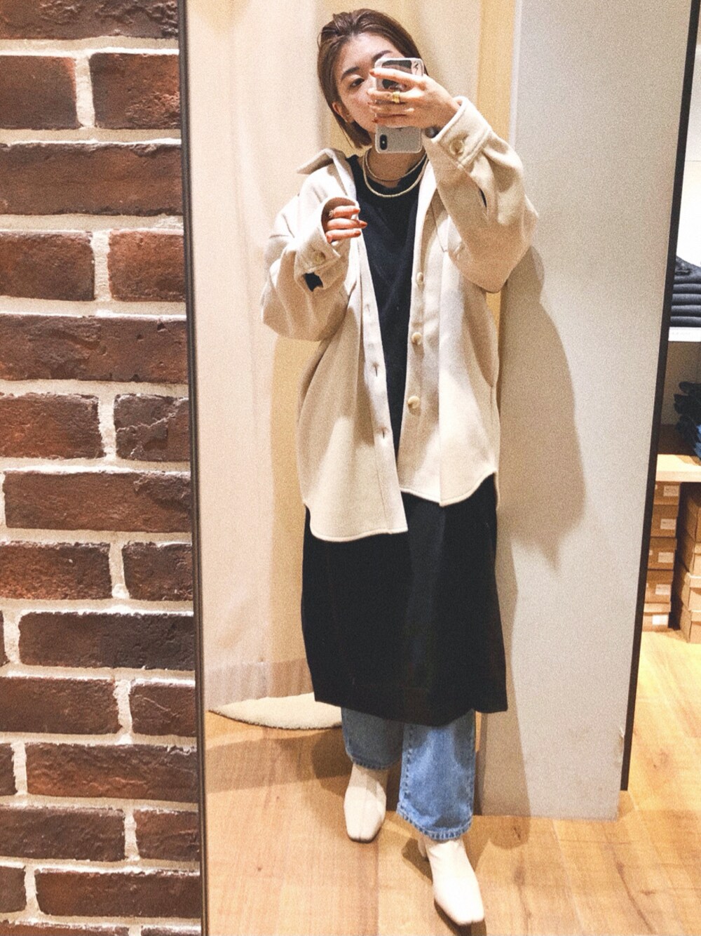 肌触りのいい厚手のシャツです♡アウター感覚でも着れるので、春先のまだ肌寒い時期にも大活躍間違いなし◎ 中のニットワンピースはかなりシンプルな形で、一枚でも着れるし、デニムを履いても可愛いコーディネートが出来ますよー♡