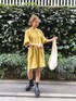 ungridではめずらしいミニワンピ♡ トレンドですが、ungridらしく楽ちんなのに着るだけで洒落て見えるデザイン。 ウエストがきゅっと絞れているので、腰位置も高く見えるのもスタイルアップに繋がります◎