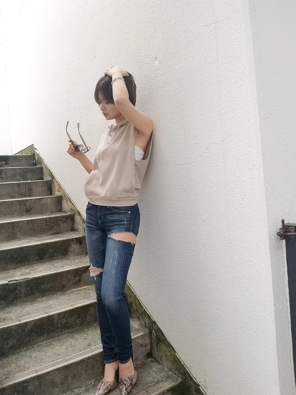 misaki(GYDA)のデニムパンツ「SIDE RIPPED スキニーデニムパンツ」を使ったコーディネート