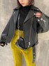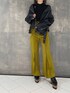 レザー×カラーパンツでモード感の強いコーデに! ブラックのレザージャケットは重たい印象になってしまいがちですが、発色の良いカラーパンツと合わせることでそのイメージは軽減されます◎レザージャケットはとても軽くて柔らかい!!襟抜きもしやすくこなれた雰囲気で着て頂けます!タックが入った袖なので程よいボリューム感もかわいいです♡ パンツは程よいフレアシルエットが低身長の方でもバランス良く着て頂けます。丈も長すぎないのでスニーカーで合わせてカジュアルダウンも出来ます◎そしてなによりもハイウエストなのが嬉しいです!!スタイルアップ効果抜群です!!