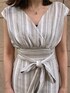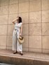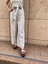 海にでも出掛けたくなるスタイリング♫ なにも考えず、1枚でおしゃれ見えするオールインワンはこれからの暑い時期にはとても楽で最高ですよね!! 素材はドライタッチでサラッとしており肌触りも良いです。見た目も着心地も清涼感たっぷり!! 楽なスタイリングではありますが、かなり上の位置でウエストマークされているので、スタイルアップ効果抜群◎ストライプ柄で、縦のラインを更に強調!! ウエストのリボンは後ろでも結んで頂けるので、フロントをスッキリと見せて着るのも◎ 丈が長くない為、ローヒールでも合わせられそうなので足元のバリエーションも増えて嬉しいです♡ この上にMURUAのシアーシャツを羽織ったりしてもかわいいですね♡