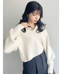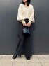 大人の上品カジュアルコーデ わたしの着用シーンのイメージは休日に女友達と軽くカフェ…といった感じです♫ 【トップス】柔らかいほわほわの素材のニットポロ。わたしのおすすめポイントは2つ! まずは襟元です。前から見ても後ろから見ても、首回りを綺麗に見せてくれる絶妙な開襟具合がとってもいいです!!1枚で着るのはもちろん、ロンTやタートルをレイヤードするのもおすすめです◎ 2つめは、お袖のボリューム感です。まくった時も降ろした時も、大胆なボリュームのあるシルエットがかわいい♡ 【パンツ】フェルト生地でしっかりと厚みのある素材のパンツは型崩れもしにくく、とっても綺麗なシルエットです◎ 太めのストレートシルエットなので、決め込み過ぎずに、気楽に履けるストレスフリーパンツです!ですが、センタープレスのおかげで脚長効果も抜群◎ 低身長の方でも取り入れやすい丈感となっております。