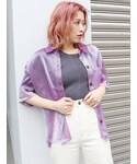 ギラギラシアーシャツコーデ 【インスタにリール動画あり】 【シャツ】透け感+光沢感で一気に今年っぽいMURUAならではのコーディネートが出来ちゃいます◎ サラッと羽織れるオーバーサイズで、光を受けて風になびいた時がとても綺麗で印象的です! 【パンツ】タイトすぎないストレートシルエットが◎ 素材もすごく柔らかいので着心地も良いです。普段腰回りが気になってデニムが苦手な方にもおすすめです!カラーパンツなところも、どカジュアルにならなくて◎ サスペンダー付きで程よいラフさを出してくれるのでシンプルなTシャツと合わせても絶対かわいい♡
