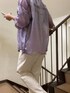 ギラギラシアーシャツコーデ 【インスタにリール動画あり】 【シャツ】透け感+光沢感で一気に今年っぽいMURUAならではのコーディネートが出来ちゃいます◎ サラッと羽織れるオーバーサイズで、光を受けて風になびいた時がとても綺麗で印象的です! 【パンツ】タイトすぎないストレートシルエットが◎ 素材もすごく柔らかいので着心地も良いです。普段腰回りが気になってデニムが苦手な方にもおすすめです!カラーパンツなところも、どカジュアルにならなくて◎ サスペンダー付きで程よいラフさを出してくれるのでシンプルなTシャツと合わせても絶対かわいい♡