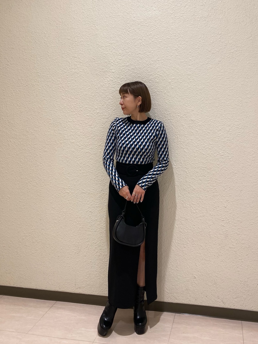 個性的だけど上品おしゃれなモードコーデ♡ 【トップス】個性的なジオメニットは1点投入するだけでコーデの主役になります。柄アイテムもブラックと合わせれば大人コーデに♡ 1枚見せもかわいいですし、フィット感があるのでインナーとしても大活躍します。 【スカート】MURUA定番のペンシルスカートが、アップデートされて当時です!トレンドのディープスリット。スリット位置がセンターよりもサイド寄で、歩いた時に自然に足が見えるようになっているので、上品な肌見せが出来ます。ストレッチ性抜群の為、タイトではありますがストレスフリーで着用して頂けます◎ 【ブーツ】激盛れブーツといえばこれです♡ 身長を詐欺れるので、低身長さんの強い味方です!!