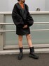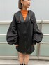 MURUAらしいフェミニンモードなスタイリング♡ 【ジャンスカ】柔らかいフェイクレザーのワンピは可愛らしさもありつつ、モードでかっこいい雰囲気も出せて着るだけでおしゃれ見えします!!155cmですと、ちょうど足を綺麗に見せてくれる丈感でスタイルアップ効果あり!程よい身幅で体のラインが出ないシルエットなのも嬉しい♡ フロントボタンを開けて、トレンドのベストとして着て頂くのもおすすめ!! 【ニット】ベーシックなシアーニットは1枚でもレイヤードでも使えて便利!カラーもかわいい!! 【アウター】クロップド丈のMA-1はモードコーデには欠かせないアイテム♡ ボリュームスリーブとのバランスもMURUAらしい!!ロンTやシャツとのレイヤードスタイルもおすすめです。