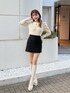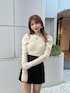 モノトーンガーリーな秋コーデ❤︎ プチハイネックのトップスに ミニスカートとロングブーツの組み合わせが好き…🫧 TOPSは、もっちりとしたニット素材🧶 パワショルで立体感ありつつ肌に密着&コンパクト丈だから スッキリ着られます〜! バイカラーのフリルハイネックと胸元のロゴ刺繍がオシャレ🪡 袖口でくしゅっとしてあげるのが今年っぽくて こなれ感でるサムホール仕様👍🏻 タイトやフレアスカート、ジャンスカはもちろん キャミワンピースやカーディガンなどの インナーにもオススメ✌︎✌︎
