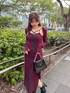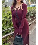 トレンド感たっぷりの コルセット風キャミワンピース×ボレロのセットアイテム❤︎ 胸元のクロス紐があざとくて 裾にあるスリットのエレガントな抜け感もポイント☺️