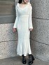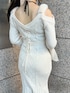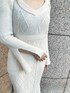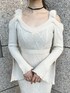 ふわふわなフェイクファーショルダーの ニットワンピース🦋 オフショル、袖スリット、マーメイドシルエットの デザインが大人っぽくレディな印象に…👠 ケーブル編みのニットで暖かい〜☺️ ウエストはゴムが入ってるので着痩せ効果も🫶🏻 後ろにはレースアップリボンも付いていて あざといディテールを詰め込んだワンピです🫣🤍 ストール合わせて季節感ある上品なコーデに🫧