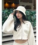 真里(EATME)のパーカー「ロゴ刺しゅう入りショートパーカー」を使ったコーディネート