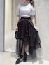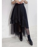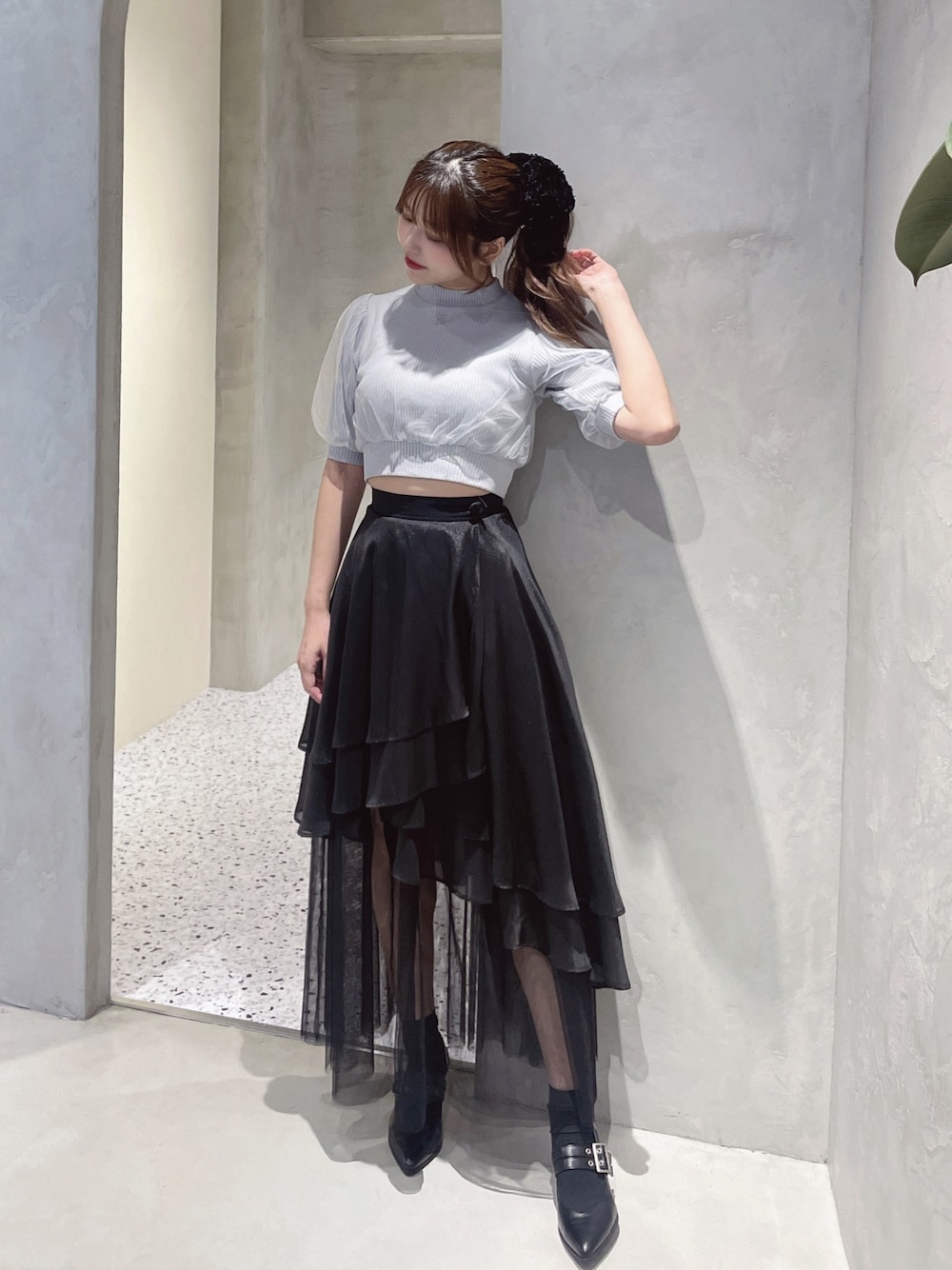 春を感じさせるチュール素材のコーデ🪄🫧 ライトグレーのトップスを主役に、 ブラックのアイテムでまとめて 大人ガーリーな雰囲気にした🫶🏻