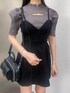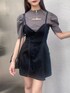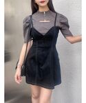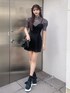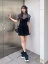このジャンスカ、店頭でも大人気すぎて無くなりそうだから狙っている方は早めに買っておいた方がいいと思う🥺㊙️ 後ろ姿のデザインも2本ラインのゴム入れてるから シンプルなトップスでも映えるし、ウエストが絞られて着痩せできる!! ・細めの肩紐ストラップで華奢見え ・胸元のハートカットと縦線のステッチがとても女性らしいアイテム。 あえてスニーカーサンダルを合わせたコーデが カジュアルガーリーでお気に入り☺︎