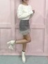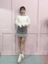 🤍🩶🤍 ホワイトとグレーのカラー合わせで、 大人フェミニンコーデ♩ もこもこファーのスカート可愛い💭ྀི 展示会オーダーも多かったアイテム🫶🏻 入荷までお楽しみにっ🪽