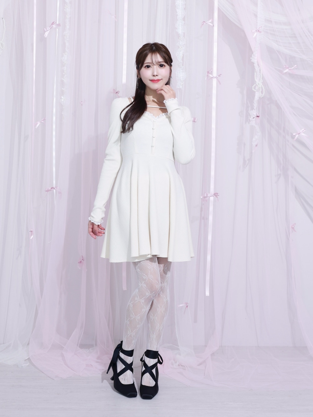 真里(EATME)のワンピース「デコルテフリルワンピース」を使ったコーディネート