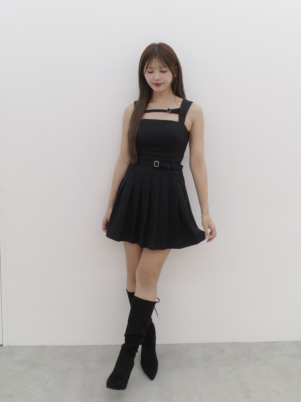 オールブラックって写真だとシンプルになりがちだけど、 これはベルトデザインとプリーツデザインが立体感あって映えた🥺✌🏻 秋口はロングブーツ合わせも可愛👢♡