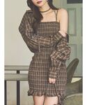 《ワンピース》 シャツとリボンとワンピースの3点セットで着回しが自由自在です! シャーリングワンピが身体にフィットするので曲線美を作ってくれます。 今の時期から着られる素材の軽さです♡ チェック柄が華やかで写真映え間違いなし🖤ᩚ 肩にアジャスターが付いてるので丈感も調節可能です。 162cmで丈感は太ももくらい、タイトシルエットでフィットするので安心感あるミニ丈です。 《ブーツ》 “脚長シルエット”を叶える神ブーツ👢 24.5cmでLサイズ着用しています。 ストレッチスエード×美脚ラインでフィット感◎ 厚底×チャンキーヒールで安定感のある履き心地です! 《バッグ》 ヴィンテージ加工フェイクレザーで高見え! 厚みのある素材で形崩れしにくいです。 レースアップとスタッズでEATMEらしいアクセント✓