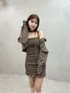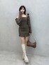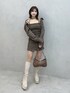 《ワンピース》 シャツとリボンとワンピースの3点セットで着回しが自由自在です! シャーリングワンピが身体にフィットするので曲線美を作ってくれます。 今の時期から着られる素材の軽さです♡ チェック柄が華やかで写真映え間違いなし🖤ᩚ 肩にアジャスターが付いてるので丈感も調節可能です。 162cmで丈感は太ももくらい、タイトシルエットでフィットするので安心感あるミニ丈です。 《ブーツ》 “脚長シルエット”を叶える神ブーツ👢 24.5cmでLサイズ着用しています。 ストレッチスエード×美脚ラインでフィット感◎ 厚底×チャンキーヒールで安定感のある履き心地です! 《バッグ》 ヴィンテージ加工フェイクレザーで高見え! 厚みのある素材で形崩れしにくいです。 レースアップとスタッズでEATMEらしいアクセント✓