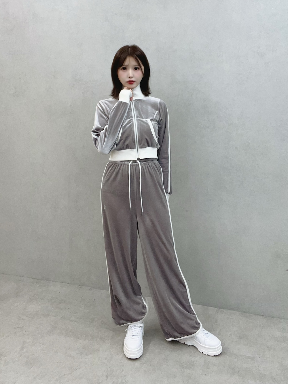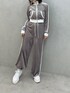 《ジャケット》 しっとり柔らかなベロア生地でリラックス感◎ ウエスト・ネック・袖口はリブ仕様で着心地抜群です。 袖の配色ラインがさりげないアクセントに✓ コンパクトシルエットでカジュアルになりすぎないEATMEらしいデザインです。 《ボトムス》 なめらかベロアで大人カジュアルに格上げします🎀 ウエストゴムでストレスフリーな履き心地です。 ゆるっと落ち感あるワイドシルエットで脚長効果◎ サイドの配色ラインが抜け感ポイント✓ 162cmで足首くらいの長さです。