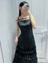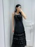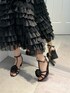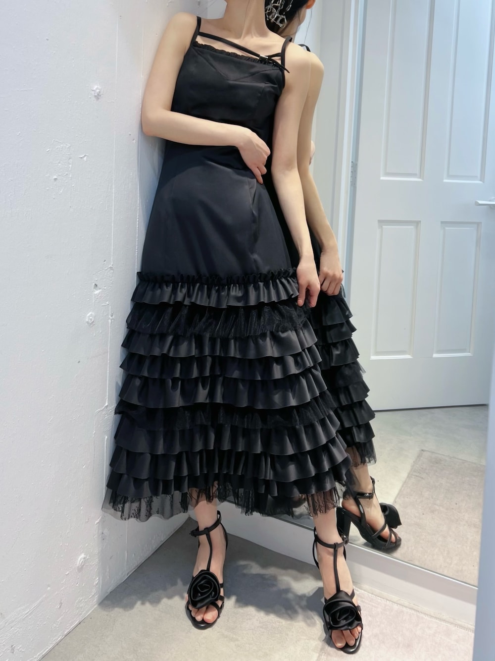 【EATME×MIKANA YAMAMOTO】 Special Collaboration フリルキャミワンピース♡ 美シルエットを拘ったキャミワンピースです。 裾には上品な繊細なレース生地と透け感のある ソフトチュールをふわっとさせたフリルを施しました。 フィットさせたウエストは女性らしいシルエットを演出してくれます。 1枚で着用するのはもちろん、カーディーガンに合わせた着こなしもオススメです。 【シューズ】 コサージュがポイントのサンダルです♡ 足のラインをきれいに見せてくれつつ安定感のあるヒールは歩きやすく疲れにくいです。カジュアルなアイテムからガーリーアイテムまで幅広く活用する優秀な1足です。