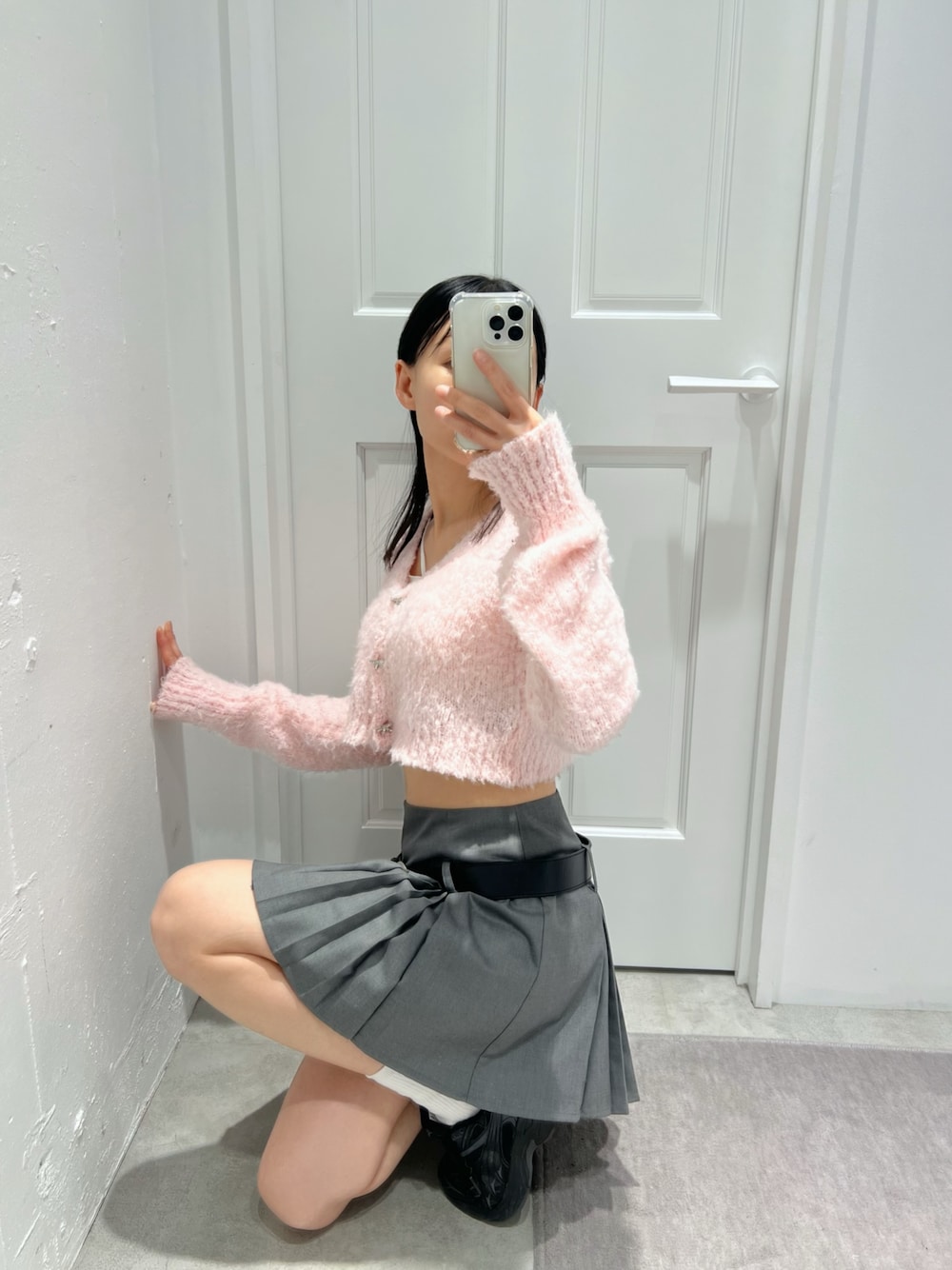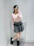 【トップス】 キラキラビジューリボンボタンがかわいいふわふわニットカーディガンです! 【スカート】 少しローウエストで仕上げたミニスカートです♡ インナーパンツがついているので安心して着ていただけます。