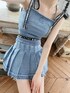 Special collaboration ♡EATME X MARY QUANT♡ 【トップス】 ストレッチの効いたデニムで仕上げたビスチェです♡ コラボのオリジナルロゴのショルダーリボンとホルター紐は取り外しができるので、気分に合わせて使えるのはうれしいポイントです! Special collaboration ♡EATME X MARY QUANT♡ 【スカート】 コラボのオリジナルロゴをあしらったウエストゴムがアクセントのスカートです♡ 裾は三つ折りほどき加工がデザインポイントです。共生地のデニムビスチェを合わせたセットアップコーデが一押しです! 【シューズ】 透け感のあるメッシュ生地柔らかなフェイクレザー生地で仕上げだショートブーツです♡ 後ろのリボンがデザインポイントです。 デニムなどのカジュアルアイテムからガーリーアイテムまで幅広く活用できる優秀な1足です。
