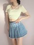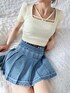 Special collaboration ♡EATME X MARY QUANT♡ 【トップス】 スクエアネックに施したストラップデザインがかわいいリブトップスです♡ 胸元にワンポイントのDAISY(デイジー)刺繍をあしらっています。伸縮性のあるリブ生地は程よく体にフィットし着心地抜群です! Special collaboration ♡EATME X MARY QUANT♡ 【スカート】 コラボのオリジナルロゴをあしらったウエストゴムがアクセントのスカートです♡ 裾は三つ折りほどき加工がデザインポイントです。共生地のデニムビスチェを合わせたセットアップコーデが一押しです!