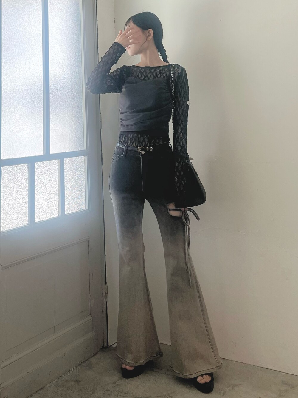 LAM(EATME)のデニムパンツ「サイドカットアウトデニムフレアパンツ」を使ったコーディネート