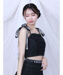 Special collaboration ♡EATME X MARY QUANT♡ 【トップス】 ストレッチの効いたデニムで仕上げたビスチェです♡ コラボのオリジナルロゴのショルダーリボンとホルター紐は取り外しができるので、気分に合わせて使えるのはうれしいポイントです! Special collaboration ♡EATME X MARY QUANT♡ 【スカート】 コラボのオリジナルロゴをあしらったウエストゴムがアクセントのスカートです♡ 裾は三つ折りほどき加工がデザインポイントです。共生地のデニムビスチェを合わせたセットアップコーデが一押しです! 【シューズ】 マットサテン生地で仕上げたローズコサージュを施したサンダルです♡ 足のラインをきれいに見せてくれつつ安定感のあるヒールは歩きやすく疲れにくいです。カジュアルなアイテムからガーリーアイテムまで幅広く活用する優秀な1足です。