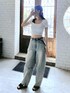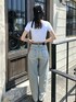 【トップス】 カジュアルな雰囲気ながらもすっきりとしたスクエアネックで、女性らしさもプラスしてくれるトップスです♡ フロントには刺繍ロゴが目を惹くポイントです。 もちっとするスムース生地で仕上げました。 【ボトムス】 カーブシルエットがかわいいデニムパンツです♡シンプルなデザインなので、様々なトップスと相性良く着回し効くアイテムです。