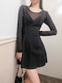 【トップス】 キラキラスタッズをあしらったシアートップスです♡ 伸縮性のあるメッシュ生地で仕上げてるので 着心地抜群です。BACKスタイルはトリプルストラップデザインになっているので、後ろまで抜かりない1着です。 【ワンピース】 BACKのカットアウトデザインはスタイルアップ効果が抜群のジャンスカです♡ ストレッチデニム生地と後ろのゴム仕様でボディにフィットしてシルエットがキレイに見せてくれます。