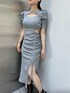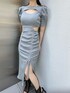 【ワンピース】 デコルテ開きとウエストのカットアウトがセンシュアルムードが漂うリブワンピースです♡ スカートのシャーリングは気になるところをカバーしつつ、美シルエットを演出してくれます! 【シューズ】 透け感のあるメッシュ生地柔らかなフェイクレザー生地で仕上げだショートブーツです♡ 後ろのリボンがデザインポイントです。 デニムなどのカジュアルアイテムからガーリーアイテムまで幅広く活用できる優秀な1足です。