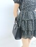 【ワンピース】 女の子らしい小花柄とラッフルディテールがかわいいワンピースです♡ パット付きなので1枚で着用できる優ものです。 【シューズ】 透け感のあるメッシュ生地柔らかなフェイクレザー生地で仕上げだショートブーツです♡ 後ろのリボンがデザインポイントです。デニムなどのカジュアルアイテムからガーリーアイテムまで幅広く活用できる優秀な1足です。 【バッグ】 上品なキルティング仕様で仕上げたバッグです♡ チェーンショルダーは取り外せるので、ハンドバッグとしても使っていただけます。