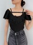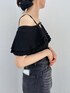 【トップス】 肩回りのフリルデザインが顔まわりをスッキリと華やかにしてくれるトップスです♡ 胸元にあしらったストラップデザインはデコルテをキレイに魅せてくれます。リブ素材なので体にフィットし美シルエットを演出してくれる1着です。カジュアルからフェミニンコーデまで使っていただける優秀な1着です。