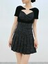 【ワンピース】 上品なツイード生地で仕上げたヘムプリー ツのワンピースです♡ 裾にあしらったプリーツは女の子らしさをプラスしてくれます。後ろはシャーリング仕様なので、体をフィットしてきれいなシルエットに魅せてくれます。 今季のホルターネックレイヤードリブTOPのショートトップスを使ってレイヤードしたコーデです♡ 【サンダル】 チェーンベルトにE/Mとハートとストーンのチャームをあしらったサンダルです♡ デザイン性高くフェミニンからカジュアルまで様々なコーデに合わせ やすい1足です。 普段23.5cmでMサイズを着用しています。