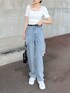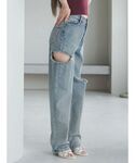 LAM(EATME)のデニムパンツ「カットアウトデニムワイドパンツ」を使ったコーディネート
