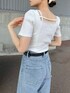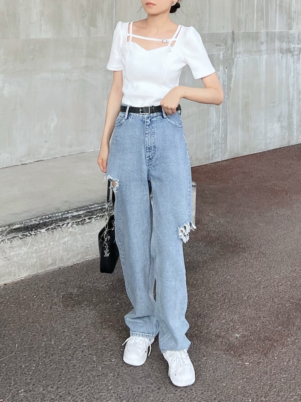 【トップス】 胸元のハートカットラインがデコルテをキレイに魅せてくれるリブトップスです♡ スリムベルトデザインをネック周りに施し拘った1着です。 細めのリブ生地とパネル切り替えを入れて、ボディに沿うシルエットに仕上げました。 デイリーにもお出かけにも着回しが効く優秀なアイテムです。 【ボトムス】 両サイトにあしらったカットアウトががかわいいデニムパンツです♡ ハイウエストデザインとキレイなウエストラインが引き締め効果抜群です。 162cmでSサイズ着用しています。