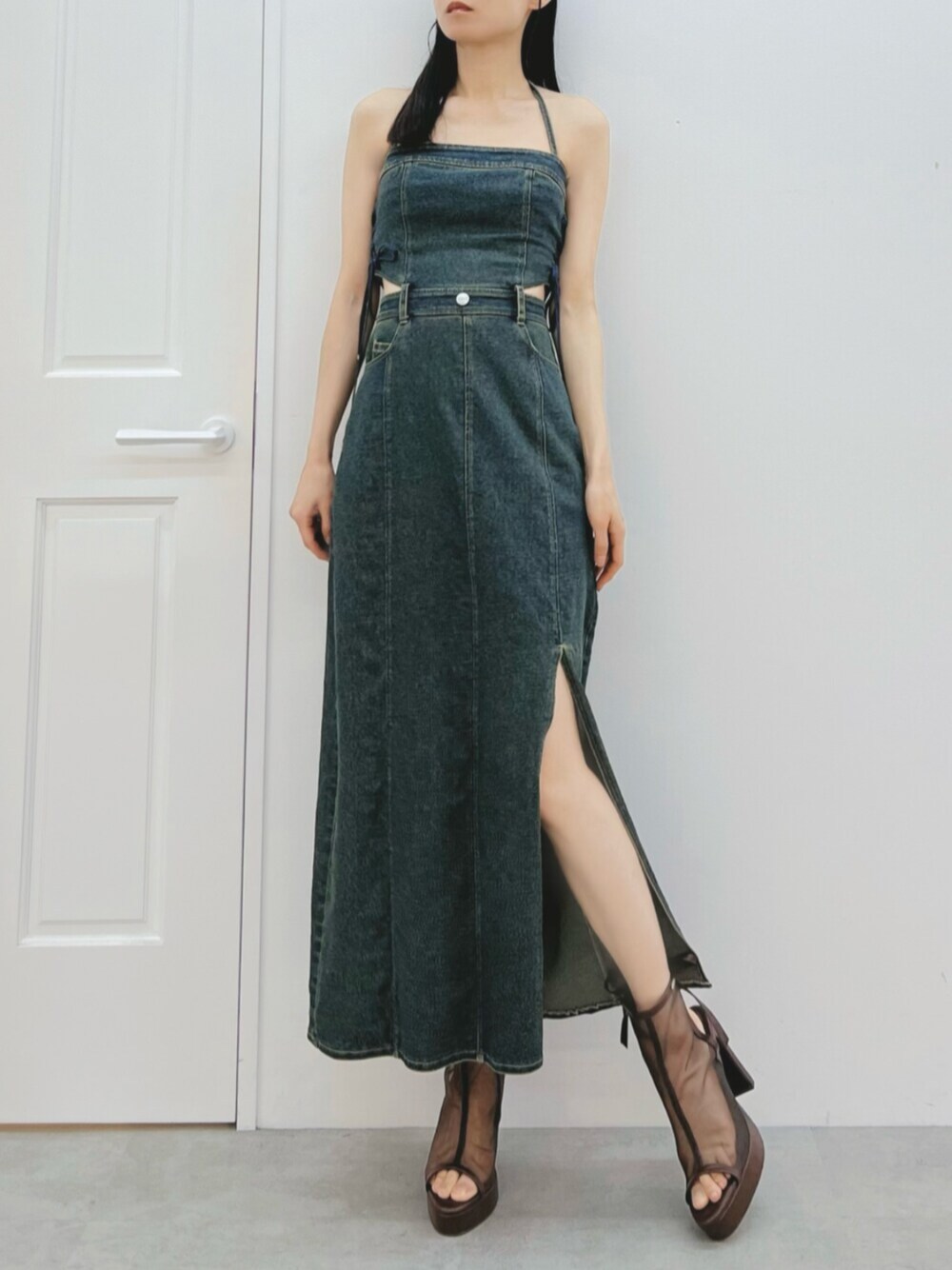 LAM(EATME)のワンピース「サイドレースアップデニムワンピース」を使ったコーディネート