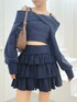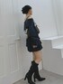 【トップス】 折り返しオフショルデザインが今年らしいトップスです♡ ボディラインに程よくフィットし、柔らかい肌触りで着心地抜群です。肩紐はレース素材になっています。 【スカート】 スウェット素材で仕上げた3段フリルのミニスカートです♡ ボリュームのあるしっかり広がるシルエットは女の子らしさを演出します。 【シューズ】 くしゅくしゅとシャープなポインテッドトゥが足をきれいに魅せてくれるロングブーツです♡ 23.5cmのMサイズを着用してます。