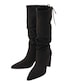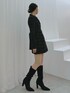 【ワンピース】 上品なツイード素材は着心地よく、女性らしさをプラスしてくれるワンピースです♡ BACKリボンなのでウエストをフィットすることができます。 テーラードカラーは大人っぽさを演出してくれて1枚でコーデが決まる優秀な1着です。 【シューズ】 くしゅくしゅとシャープなポインテッドトゥが足をきれいに魅せてくれるロングブーツです♡ 23.5cmのMサイズを着用してます。