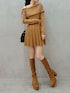 【ワンピース】 モチっとした糸で編んだワンピースです♡ スカートはプリーツデザインで女性らしさを演出してくれます。 【バッグ】 キルティング仕様で仕上げたフェイクレザーショルダーバッグです♡ チェーンショルダーの長さを変えることで肩かけやショルダーかけとしても使っていただけます。 【シューズ】 ストレッチの効いたスエード素材で仕上げたロングブーツです♡ くるぶしにあしらったベルトは目を惹きます。 23.5cmのMサイズを着用してます。